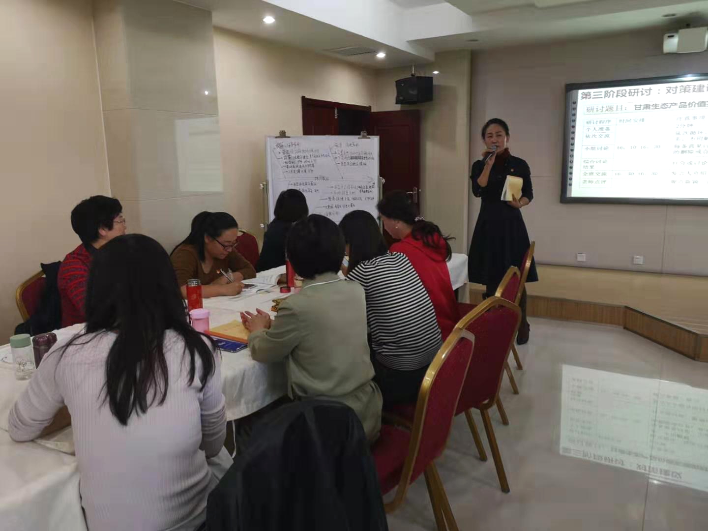 (通讯员 曾慧莲)9月27日下午,女干部领导能力提升培训班举行结构化研讨。全体学员就“甘肃生态产品的价值实现”这一主题展开热烈讨论,研讨活动由社会和生态文明教研部老师全程参与指导。