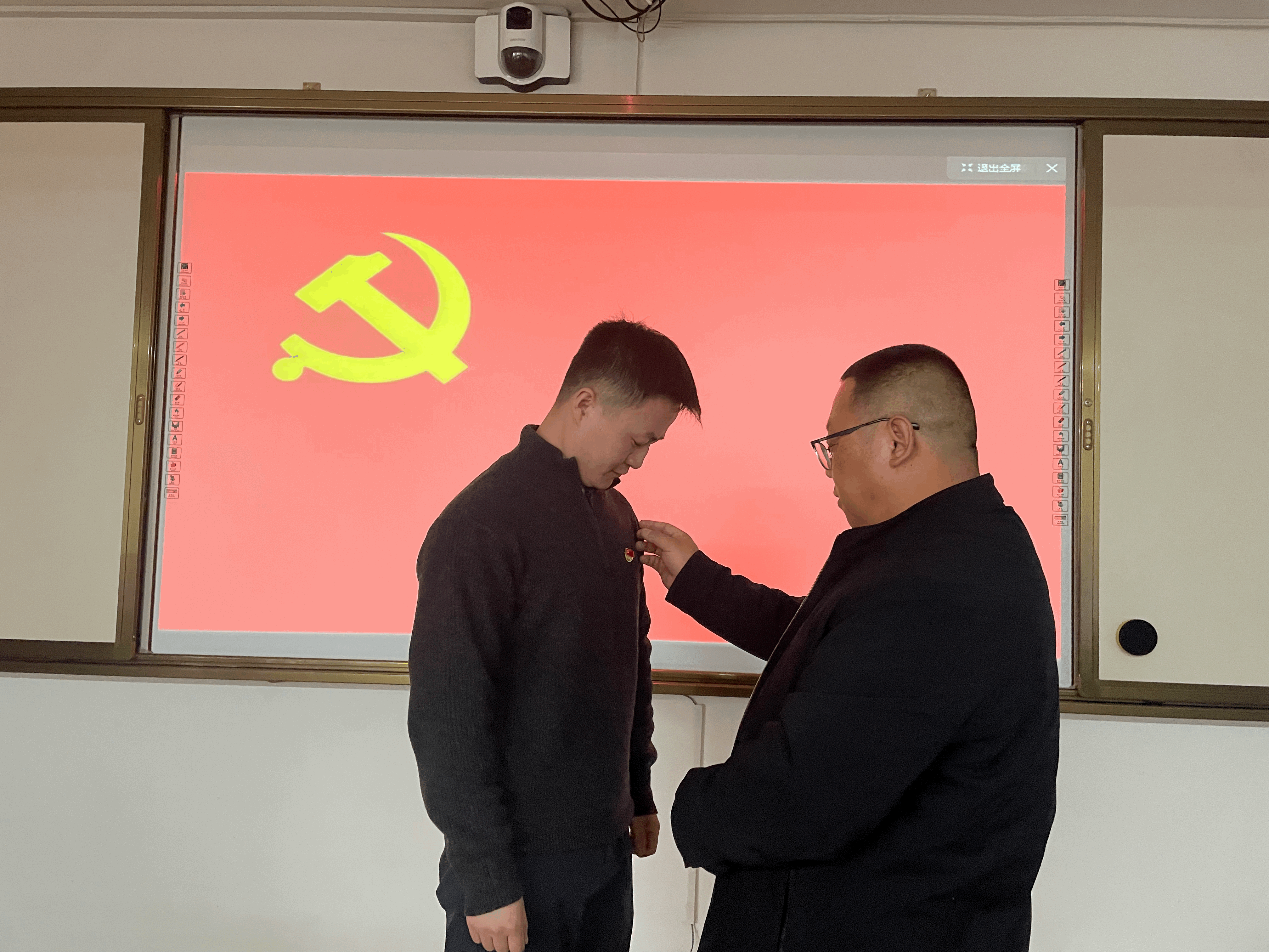 拳拳初心担使命,铮铮誓言鉴忠诚。新党员任明同志面对鲜红党旗庄严宣誓,郑重表达了对党的坚定信念和为党的事业奋斗终身的决心。随后,任明同志作表态发言,表示要时刻牢记共产党员的初心使命,始终坚定远大理想信念,对党绝对忠诚;要严守党纪党规,认真履行党员义务,自觉树立良好党员形象;要立足岗位实干担当,持续提升工作能力,努力为党和校(院)事业做出更大贡献。支部书记王旺祥为新发展党员任明佩戴了党徽。