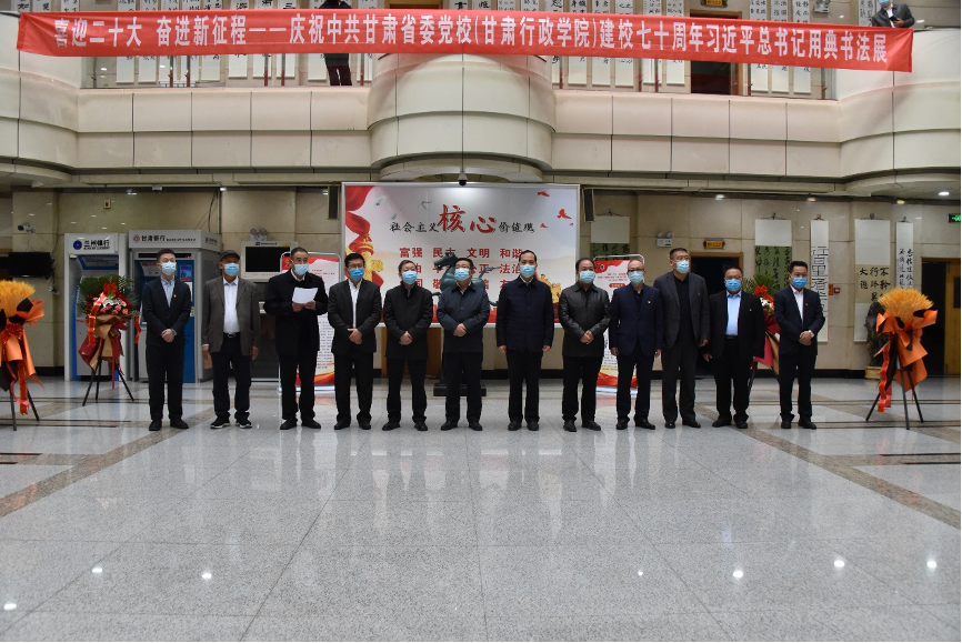 (通讯员 任明)10月14日上午10点,喜迎二十大,奋进新征程——庆祝中共甘肃省委党校(甘肃行政学院)建校七十周年习近平总书记用典书法展在安宁校区教学楼一楼大厅开幕,副校(院)长辛焕新、杨忠、袁凯、徐建群参加,甘肃省书法家协会副主席李维君、兰州市书法家协会顾问、原副主席姚鹏英受邀出席开幕式。