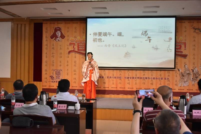 (通讯员 李 喻)又是一年端午节。6月23日下午由校(院)创建全国文明单位领导小组办公室主办,文史教研部、校工会承办的2020年第二期以“弘扬爱国主义精神 坚定文化自信——中国传统节日端午节”为主题的道德讲坛如期在教学楼202教室举办。副校(院)长辛焕新、杨忠、袁凯、杨文福、二级巡视员王伟出席,校(院)约200多位教职工参加了此次道德讲堂。本期道德讲堂正值中国传统节日端午节,在传统节日中深挖爱国道德内涵,丰富校(院)文化活动,树立教职员工文化自信取得了良好的效果。
