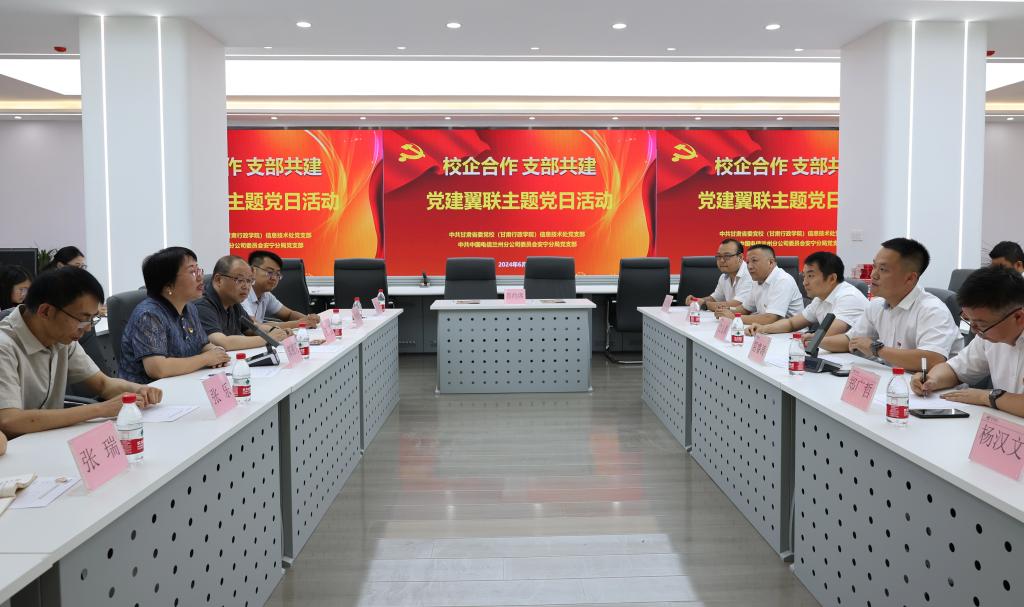 为庆祝中国共产党成立103周年,6月24日,信息技术处党支部联合中国电信兰州公司安宁分局党支部举办“党建翼联”主题党日活动。此次活动旨在加强党建工作,促进双方单位之间的交流与合作,共同提升党员的政治素养和业务水平。