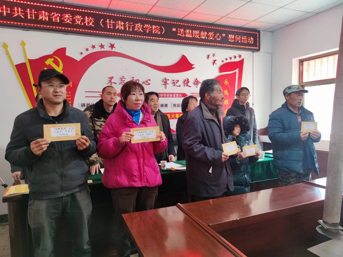 慰问仪式上为3名乡风文明先进典型、5名助学对象、9名困难党员和群众送上了慰问金,还为村党支部送去支部建设经费。杨文福指出,本次慰问和走访活动,是省委党校(甘肃行政学院)贯彻落实习近平新时代中国特色社会主义思想和党的二十大精神的实际举措,充分体现了校(院)委和全体教职工对迎丰村群众的深切关怀。他真诚希望和祝福每一位农民群众能度过一个幸福、祥和、健康、快乐的春节。