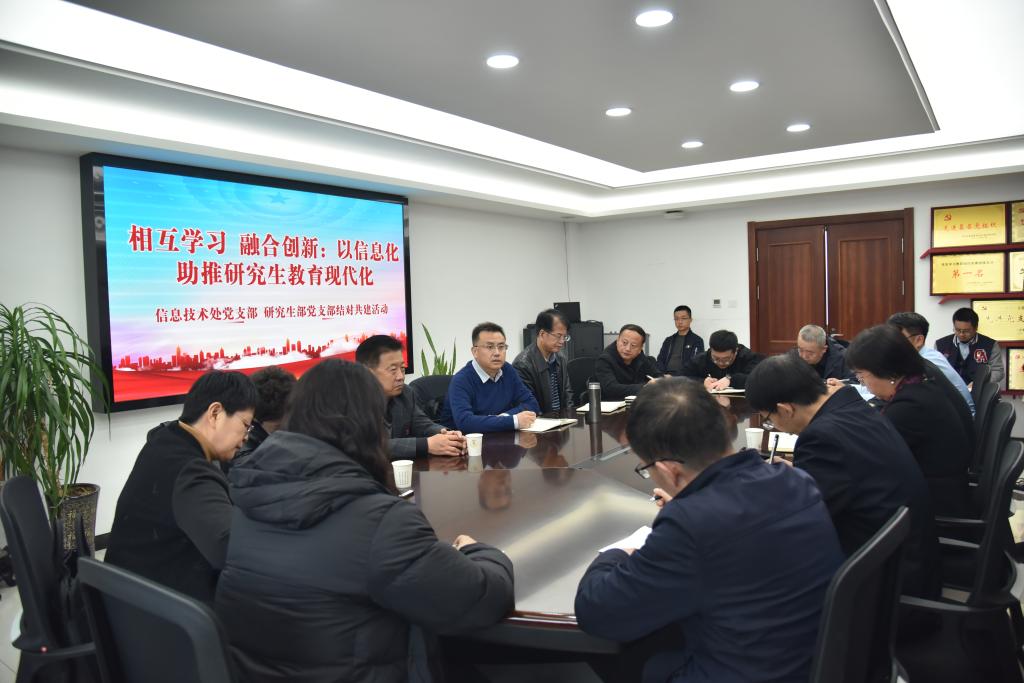 (通讯员 左超元)为加强学习互鉴,深化交流合作,促进校(院)研究生教育与信息化工作双提升。11月20日下午,研究生部党支部与信息技术处党支部共同开展以“相互学习 融合创新:以信息化助推研究生教育现代化”为主题的支部党日活动。