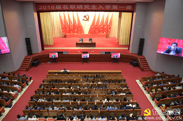 9月13日上午,副巡视员刘亚桥给2018级第一批集中班次在职研究生和部分教师、班主任在学校大礼堂讲“入学第一课”。