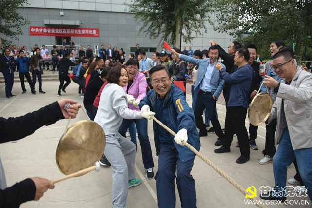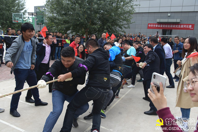 9月17日下午,省委党校2018级在职研究生第一批次集中班级在校体育馆广场举行了拔河比赛,战略哲学班等11个班级共400余名学员参加,全体班主任及研究生部工作人员也亲临现场为学员们加油鼓劲。