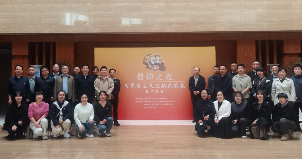 参观过程中在马克思主义学院讲师王皎的讲解下,全体学员依次参观了“真理力量 薪火相传”“手稿藏书 经久弥珍”“经典巨著 思想丰碑”“‘两个结合’最大法宝”四大主题展区。从泛黄的《共产党宣言》最早中译本到记录着马克思、恩格斯笔迹的珍贵手稿,一件件展品如同跨越时空的信使,生动再现了马克思主义理论的发展脉络及其指引中国革命与建设实践的巨大真理力量。王亚强教授最后总结强调,中共甘肃省委党校(甘肃行政学院)是西北唯一一家展览马克思主义文献典藏的党校(行政学院),全体学员要珍惜此次参观机会,深入了解马恩系列著作的诞生过程,从生态文明角度出发,全面掌握中西方马列思想的发展及其内涵。