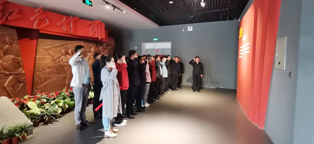 随后大家来到《红色甘肃——走向1949》展厅,走进了在风起云涌的革命年代,甘肃特支的成立、南梁烽火的燃起、陕甘根据地的创建、红军长征胜利会师、西路军鏖战河西及人民解放军胜利进军等一系鲜活的革命历史进程,更加深刻地体悟了当时苦难深重的甘肃各族人民是如何在中国共产党的领导下,一步步走向辉煌的伟大革命历程。一件件珍贵的历史文物、一幅幅生动的历史画面,再现了革命先辈前赴后继、流血牺牲的大无畏精神,激励着全体学员要好好珍惜来之不易的革命成果,继续发扬革命先辈的伟大精神,立足本职岗位,走好新时代新的长征路。最后,在班支部书记的带领下,全体党员举起右手,紧握拳头,庄严宣誓,重温入党时的初心使命,铮铮誓言在展厅回荡,让每一名党员心潮澎湃,精神振奋。