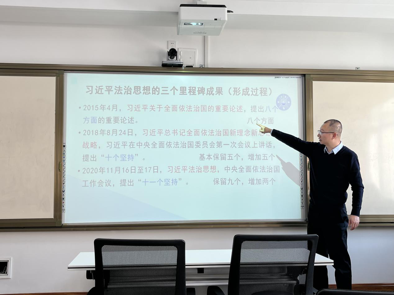 徐世平教授与法学(二)班研究生面对面深入探讨交流,紧扣学习贯彻党的二十大精神这一主题,围绕二十大报告中的“法治”内涵、重要部署、新时代中国法治建设的成就和经验等方面,从广义和狭义两个维度阐释“法治”内涵,从法治道路、法律体系、法治社会等六个层面解读“法治”部署,从三个里程碑成果解析习近平法治思想的形成过程,深入浅出、清晰明了地讲解了以习近平同志为核心的党中央,从关系党和国家长治久安的战略高度来定位法治、布局法治、厉行法治。