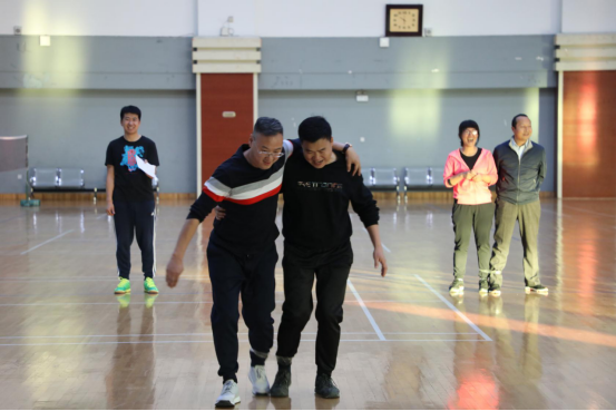 绑腿跑时齐心协力,奔向终点。