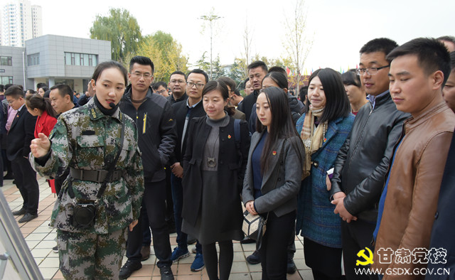 南梁革命纪念馆文艺小分队表演的舞蹈《新时代女兵》为活动拉开了帷幕。紧接着,全体学员分5组跟随讲解员引领进行了聆听。通过对南梁景区、“两点一存”主题文化广场简介的聆听,同学们了解到南梁抓住机遇,克服困难,发展经济的进取精神;通过对抗大七分校、大凤川军民大生产纪念馆简介的聆听,同学们了解到刘志丹、谢子长、习仲勋等革命先烈创建陕甘革命根据地和组织参与革命斗争的历史,让大家感受了革命年代甘肃党的建设的艰难岁月。讲解员声情并茂的讲解,使全体学员均被革命先烈们矢志不渝、坚贞不屈从事革命斗争的精神品质深深感染。在互动活动中,根据展览、讲解内容学员们还与工作人员进行了竞猜问答,通过问答,学员们在轻松快乐的氛围中加深了对南梁精神的理解。