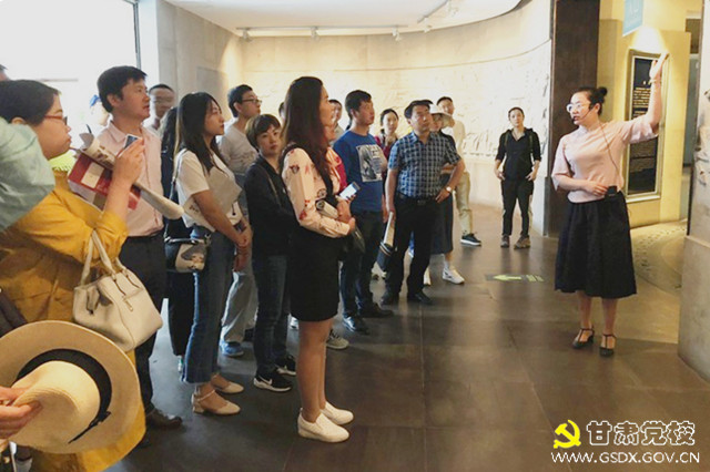 在甘肃省博物馆,大家跟随讲解员先后参观了“甘肃彩陶”、“甘肃丝绸之路文明”、“春天的故事——改革开放40周年礼赞”等展厅和《红色甘肃——走向1949》展板,近距离感受甘肃璀璨而夺目的历史文明和中国共产党发展历程。
