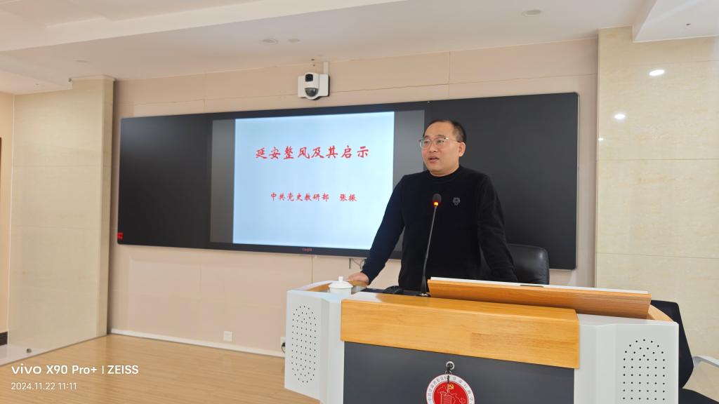 (通讯员 安林瑞)为进一步践行“为党育才、为党献策”的党校初心,提升教师教学能力,11月22日上午,中共党史教研部党支部开展了“党建引领促提升,打磨课程炼技艺”的主题党日活动暨教研部说课磨课活动,支部书记范景鹏同志主持会议。