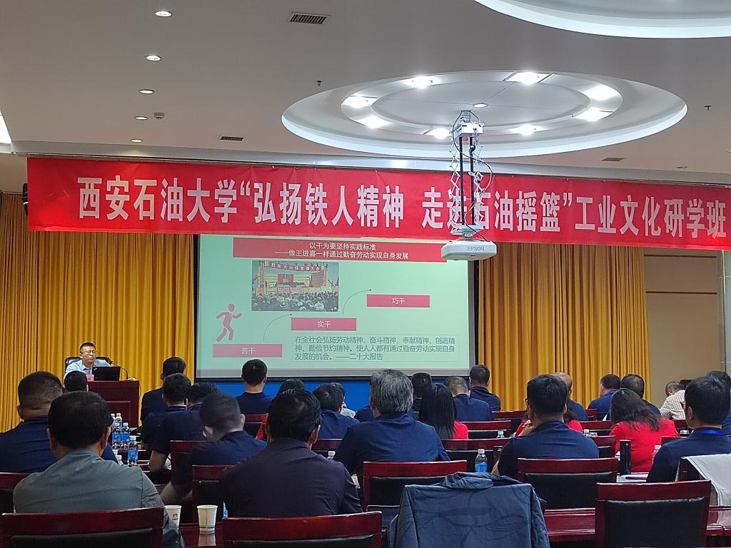 7月12日,教研部副主任范景鹏教授应邀在玉门油田公司,给西安石油大学“弘扬铁人精神 走进石油摇篮”工业文化研学班讲授铁人精神专题课,报告从意义、内涵、自信、主动四个维度,讲述了铁人精神的传承和发展,特别是以历史周期率的视角对比今昔,曾经的石油战线在党的领导下红旗飘飘,在改变“中国贫油国”的落后面貌中发展壮大,创造了“工业学大庆”的典范,成了中国工业战线的一面旗帜。但党的十八大后,中石油系统成为反腐的重灾区。对比今昔,为在新时代以“历史周期率”的警醒弘扬铁人精神、赢得历史主动提供了重要的遵循和指导。