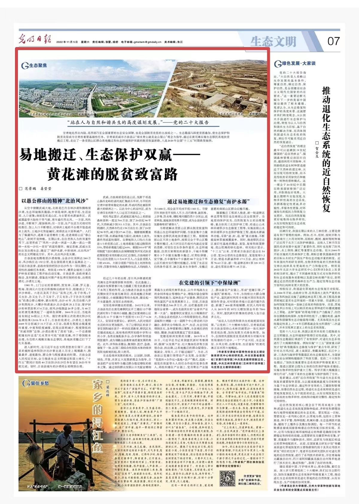 (通讯员 朱柏萍)11月05日 ,中共党史教研部副主任范景鹏教授以党的二十大提出的新思想、新论断、新要求为指导,联系习近平总书记视察甘肃的重要讲话和指示精神,以甘肃省中国特色社会主义理论体系研究中心特约研究员名义,在《光明日报》生态文明版头条发表。