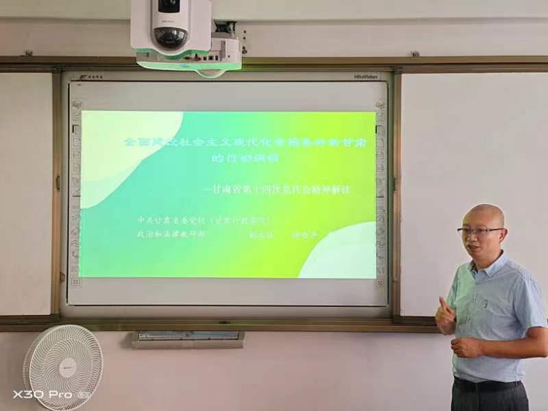 2022年7月2日,2020级法学理论专业(六)班研究生开展党性教育,中共甘肃省委党校(甘肃行政学院)政治和法律教研部副主任、法学理论专业导师组副组长徐世平教授作宣讲报告,报告的主题是《全面建设社会主义现代化幸福美好新甘肃的行动纲领》。