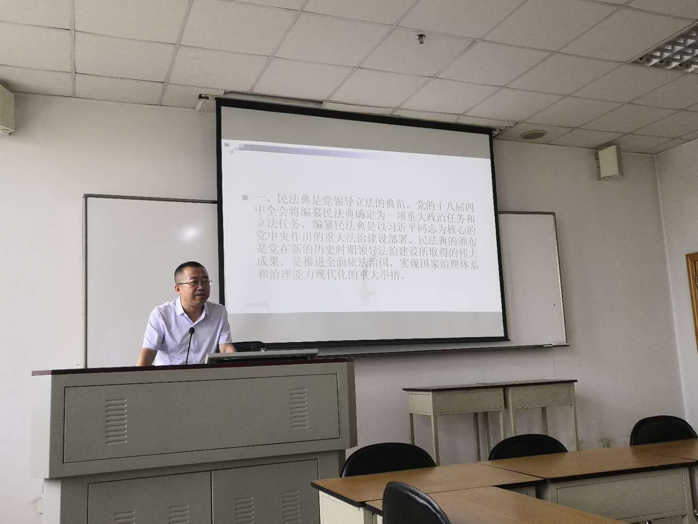 会上,李钢副教授以《〈民法典〉的颁布与国企改革发展》《〈民法典〉的创新与影响》为题进行试讲,何志春教授以《〈民法典〉热点问题透视》为题进行试讲,试讲教师与其他教师现场讨论了专题的提纲改进、材料取舍、重点选择、课件完善等。