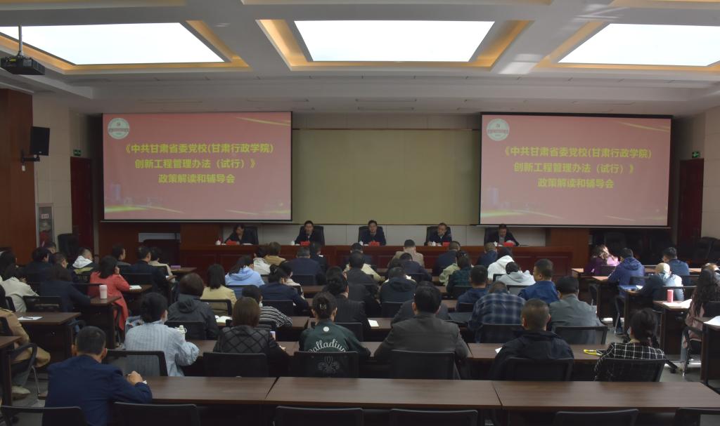 为推进校(院)创新工程工作有效落实,4月24日上午,校(院)召开《中共甘肃省委党校(甘肃行政学院)创新工程管理办法(试行)》政策解读和辅导会,副校(院)长李秉文主持会议并讲话教务处、科研处、决策咨询部和计划财务处等相关部门负责同志参加了解读和答疑,各部门负责同志及教职工代表共90余人参会。