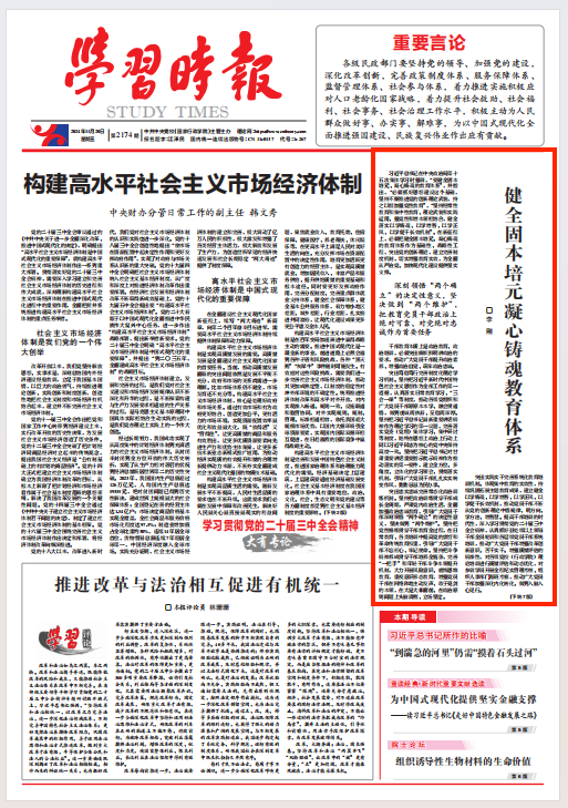习近平总书记在中央政治局第十五次集体学习时强调,“要健全固本培元、凝心铸魂的教育体系”,并指出,“必须抓好思想建设这个基础,坚持不懈推进党的创新理论武装,持之以恒加强党性教育”,“坚持经常性教育和集中性教育、理论武装和实践运用、强党性和增本领相结合,健全落实以学铸魂、以学增智、以学正风、以学促干长效机制”。在新征程上,必须把健全固本培元、凝心铸魂的教育体系作为基础性、战略性工程,突出党的创新理论,建立完善制度机制,切实增强教育实效,为全面从严治党、加快现代化建设提供坚实支撑。