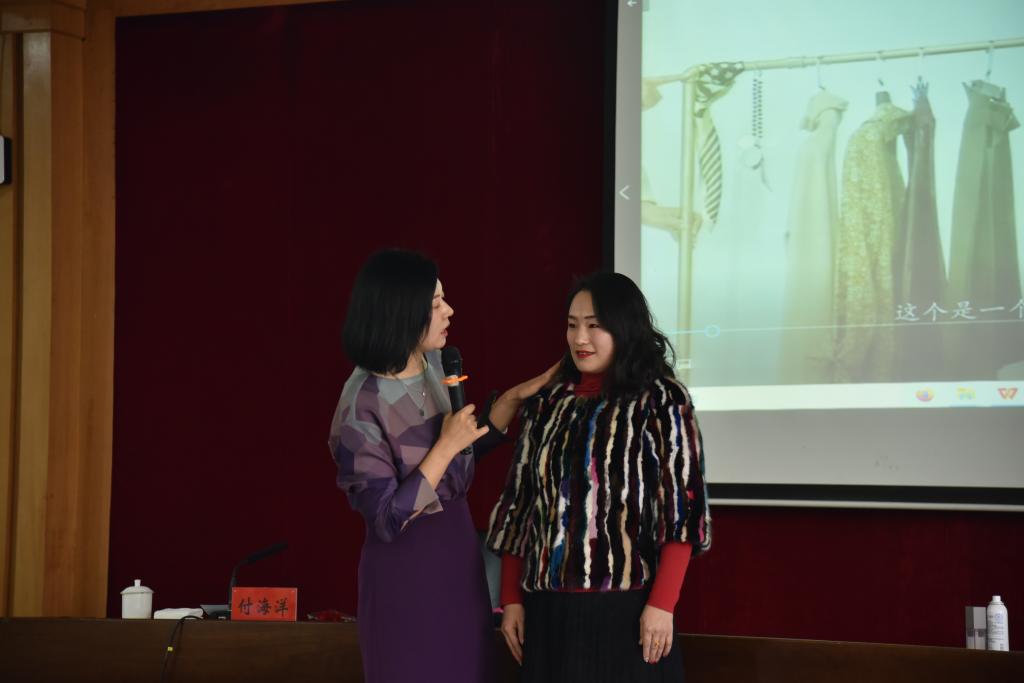 本次讲座邀请到全国知名个人形象提升礼仪专家、管理学博士、副教授魏宁宁女士主讲。随着热烈的掌声,优雅的宁宁老师带着优秀团队及各类漂亮服饰来到台前,美学讲座由此拉开了帷幕。宁宁老师通过大量图片、文字及生动有趣的事例,从女性日常生活中的言谈举止、仪容仪表、社交礼仪等方面入手,向大家详细讲解了健康养生、日常化妆、发型打理、服饰搭配等多方面美学知识。在场女职工积极互动,主动分享、踊跃提问,无一不表达着她们爱美,也渴望变得更美。活动中,大家争先恐后等待宁宁老师“钦点”,一个个自信地站在台上聆听老师对妆发搭配的建议、尽享现场改妆的愉悦,看着镜中崭新的自己露出了羞涩而又迷人的微笑。大家热情高涨、互动积极,现场气氛热烈。