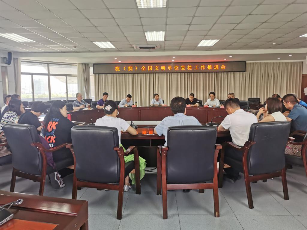 (通讯员 张星)9月1日下午,校(院)组织召开全国文明单位复检工作推进会。副校(院)长袁凯主持,校(院)创建全国文明单位领导小组办公室全体成员参加。