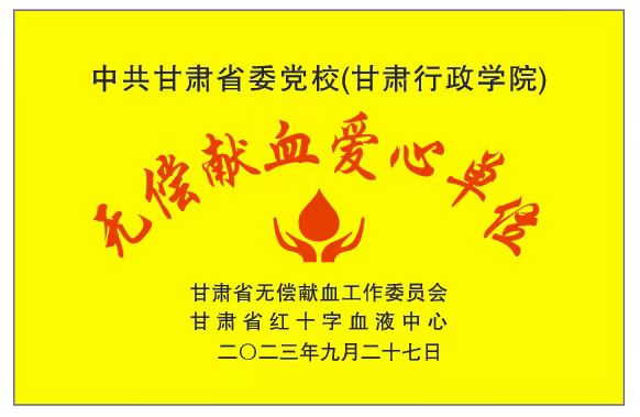 (通讯员 魏兰)近日,甘肃省无偿献血工作委员会、甘肃省红十字血液中心授予中共甘肃省委党校(甘肃行政学院)“无偿献血爱心单位”称号。