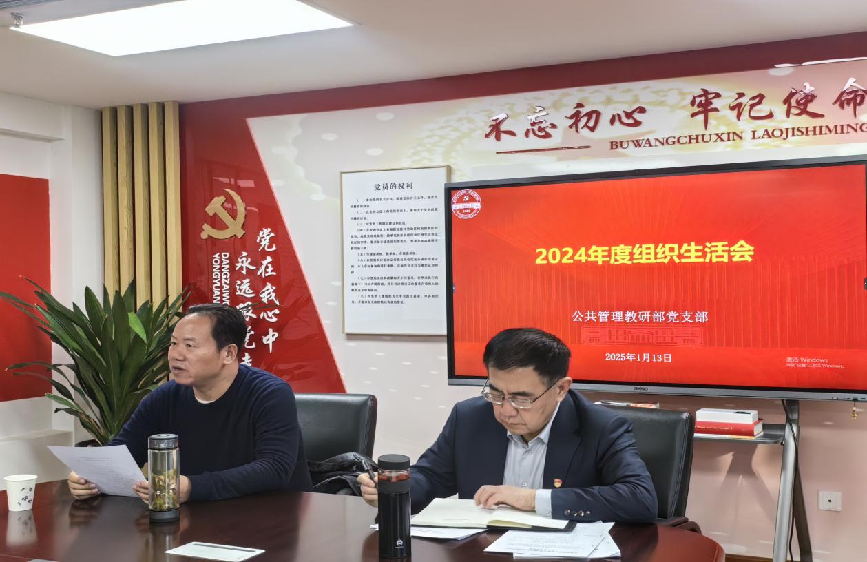 张建君在肯定公共管理教研部支部多年来PDCA党建工作的有益探索的基础上,对支部2024年组织生活会予以肯定,认为会议前期准备充分,党员教师精神状态好,界定问题精准,整改措施实。同时,他也对党支部下一步工作提出了期望,强调要持续加强理论学习,不断提高党员政治素养;要切实抓好问题整改,将整改成果转化为推动工作的强大动力;要进一步强化党建引领,积极探索党建与业务融合的新路径,以高质量党建促进教研部高质量发展。