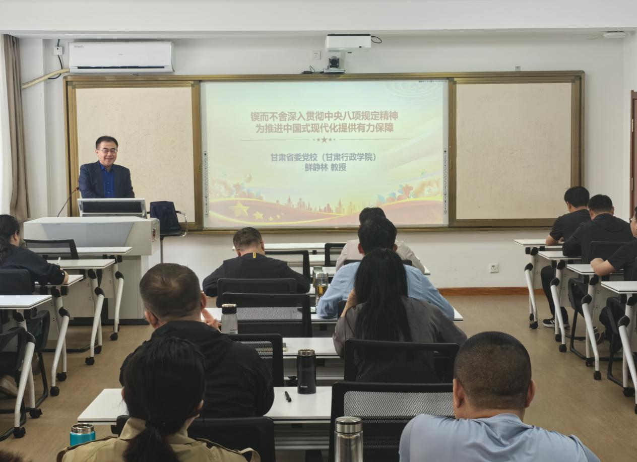 (通讯员 陈斌斌)为深入学习贯彻中央八项规定精神,持续抓好作风建设,4月19日下午、20日下午公共管理教研部党支部书记、行政管理专业导师组组长鲜静林教授分别在2024级行政管理专业五班、六班和七班党性教育课上为全体学员作了主题为“锲而不舍深入贯彻中央八项规定精神 为推进中国式现代化提供有力保障”的专题辅导。此轮专题辅导,是公共管理教研部党支部推动中央八项规定精神学习教育与研究生教育深度融合的创新实践,更是将支部党课延伸至研究生党性教育全过程的有益探索。