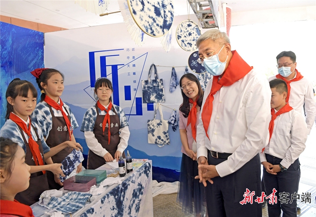 校园里充满欢快和向上的气息,彩陶、扎染、3D彩绘、机器人、无人机工作坊等社团活动丰富多彩,尹弘认真聆听孩子们充满童趣的介绍,了解学校社团活动开展情况,祝大家节日快乐。随后尹弘与孩子们一起参加少先队集中入队、离队仪式。他说,习近平总书记在庆祝中国共产主义青年团成立100周年大会上发表重要讲话,指出“在实现中华民族伟大复兴的征程上,中国共产党是先锋队,共青团是突击队,少先队是预备队”。你们作为预备队的一员,今天是小树苗,将来一定会长成参天大树、栋梁之才。希望大家牢记习爷爷的教诲,从小听党话、始终跟党走,志存高远、勤学上进,争做德智体美劳全面发展的社会主义建设者和接班人。