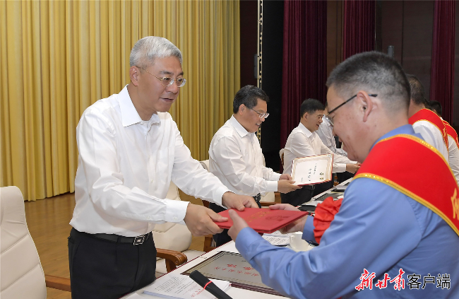 6月14日,甘肃省2022年河湖长制工作会议暨全省河长制湖长制工作先进集体和先进个人表彰大会在兰州召开。省委书记、省总河长尹弘出席会议并讲话。新甘肃·甘肃日报记者 高 樯