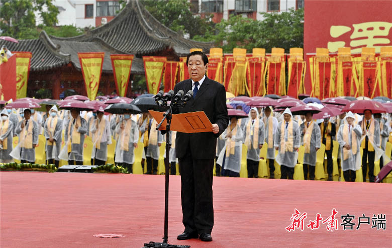 2022(壬寅)年公祭中华人文始祖伏羲大典隆重举行 齐续春宣布大典开始 任振鹤恭读祭文 欧阳坚主持
