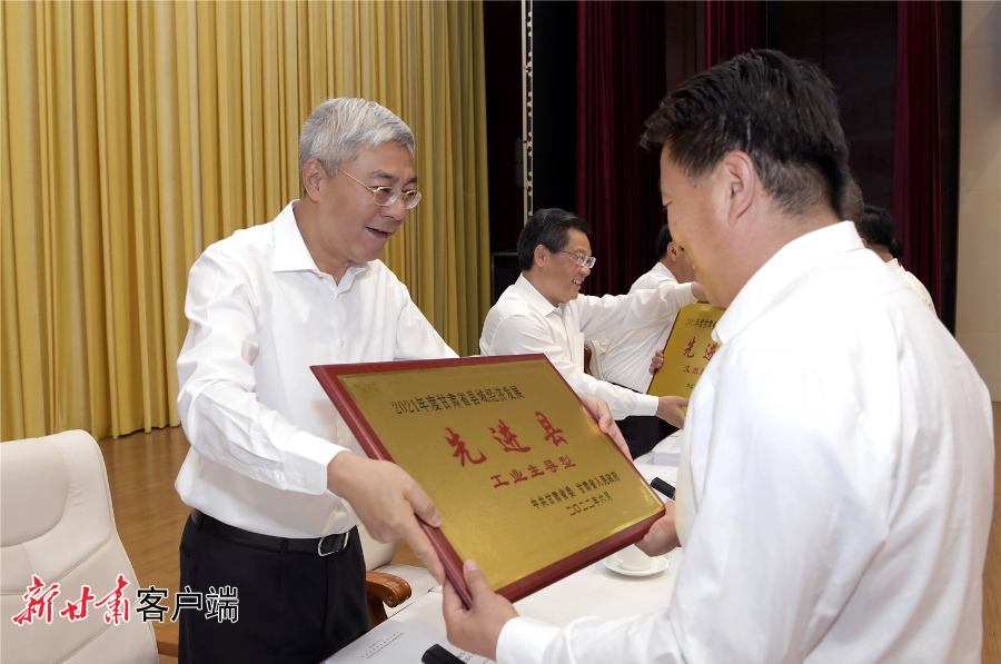 会议通报了2021年度全省县域经济评价情况,为县域经济发展十强县、先进县代表颁奖。