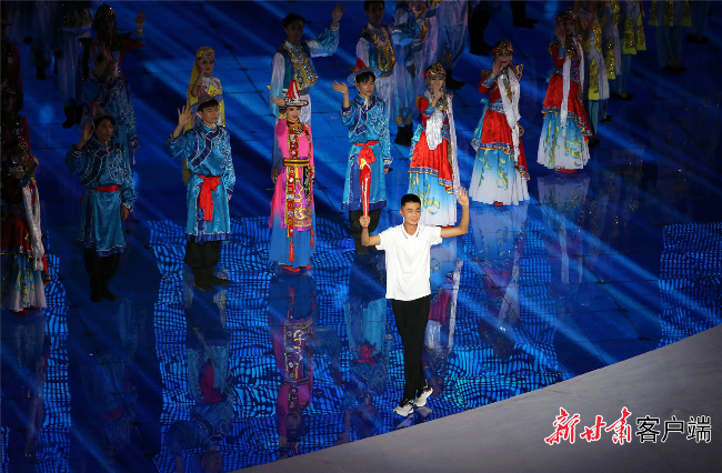 在引人瞩目的火炬传递和点燃环节,火炬在“全国三八红旗手”鲁毛才让,“第48届南丁格尔奖”获得者脱亚莉、全国“五一”劳动奖章获得者牛文斗、“大国工匠”潘从明、国家级运动健将逯艳手中依次传递。最后,由国家二级运动员、兰州大学学生杨万熙点燃主火炬。