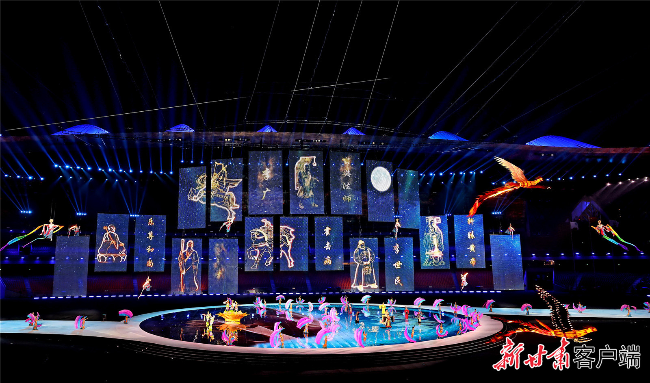 借助多媒体技术和声光电手段,开幕式文艺演出《丝路新画卷 阔步新征程》精彩上演。整场演出共分《华夏血脉 日月经天》《青山绿水 大美陇上》《厚积薄发 开创未来》三个篇章。
