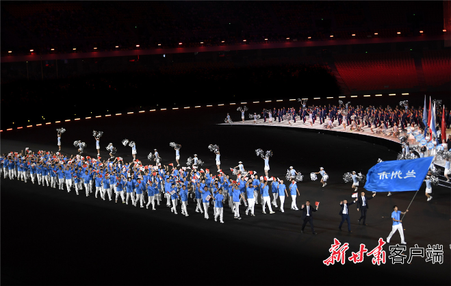兰州奥体中心体育场,华灯璀璨、流光溢彩。20时整,开幕式正式开始。在《歌唱祖国》的悠扬旋律中,鲜艳的五星红旗在仪仗队护卫下进入会场。随后,甘肃省运动会会旗、省第十五届运动会会旗以及裁判员、各参赛代表团依次入场。