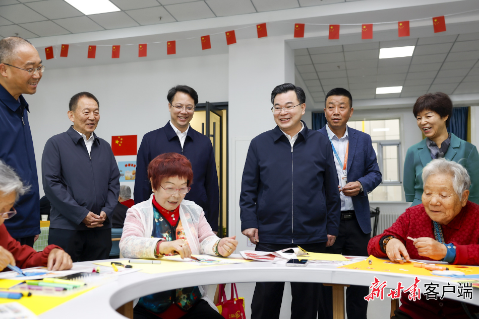国庆假期,恰逢中秋。兰州市老年公寓西站分部洋溢着浓浓的节日氛围,老人们在工作人员的陪护下进行绘画、棋牌、乒乓球、打手鼓等活动。胡昌升同老人们热情交流,关切询问生活起居和照料服务等情况,向他们送上节日祝福。他说,尊老敬老是中华民族的传统美德。我们要满怀真情、付出真心,以心细如发的专业态度,精细精心照料服务,让老年人健康更有保障、生活更有质量,拥有一个幸福美满的晚年。要组织形式多样的文体活动,更好满足老人的精神需求,让每位老人都能感受到家的温暖。胡昌升强调,一个社会幸福不幸福,很重要的是看老年人幸福不幸福。各级党委政府要认真落实积极应对人口老龄化战略,加快推动养老事业养老产业高质量发展,大力营造全社会养老孝老敬老浓厚氛围,努力做到让全省老年人老有所养、老有所依、老有所乐、老有所安。