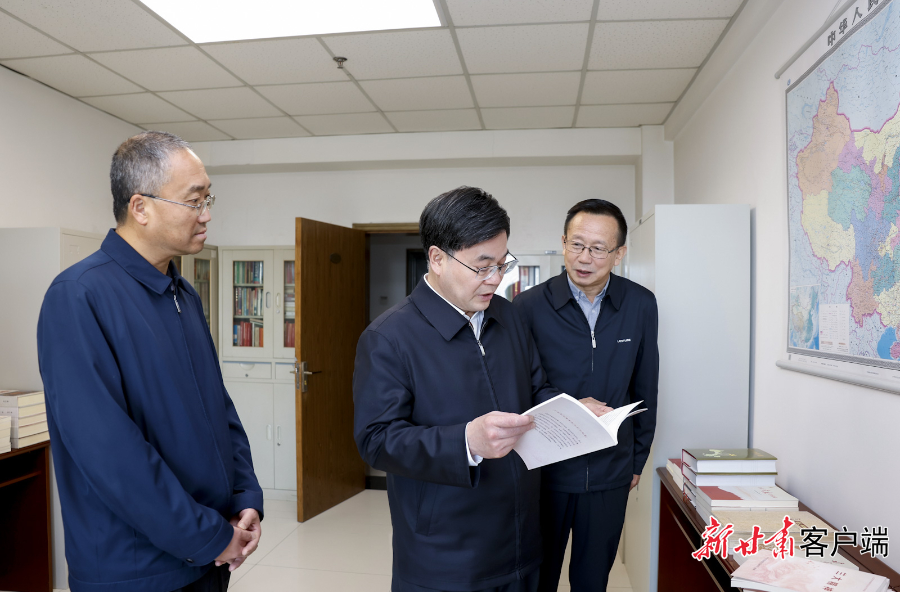 10月15日,省委书记、省人大常委会主任胡昌升在省地方史志办、省政府文史馆、省政府参事室、省委党史研究室调研。新甘肃·甘肃日报记者 孟捷