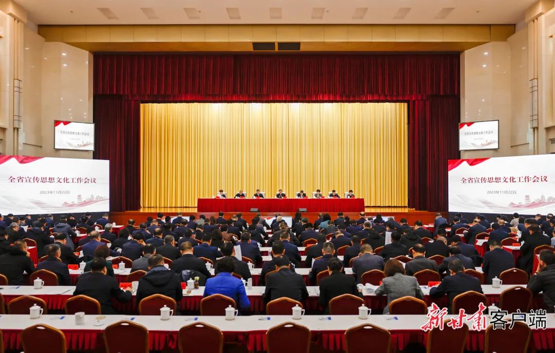 全省宣传思想文化工作会议11月22日在兰州召开,省委书记、省人大常委会主任胡昌升出席并讲话。他强调,要坚持以习近平新时代中国特色社会主义思想为指导,深入学习贯彻习近平文化思想,认真落实全国宣传思想文化工作会议精神,坚决扛起新时代新的文化使命,加快建设繁荣兴盛的文化强省,为推进中国式现代化甘肃实践提供坚强思想保证、强大精神力量、有利文化条件。