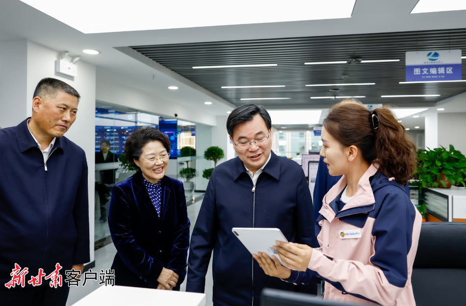 11月7日,在第二十五个中国记者节来临之际,省委书记、省人大常委会主任胡昌升在临夏州融媒体中心看望慰问新闻工作者,代表省委、省政府向全省广大新闻工作者致以节日的美好祝愿和诚挚问候。新甘肃·甘肃日报记者 孟捷
