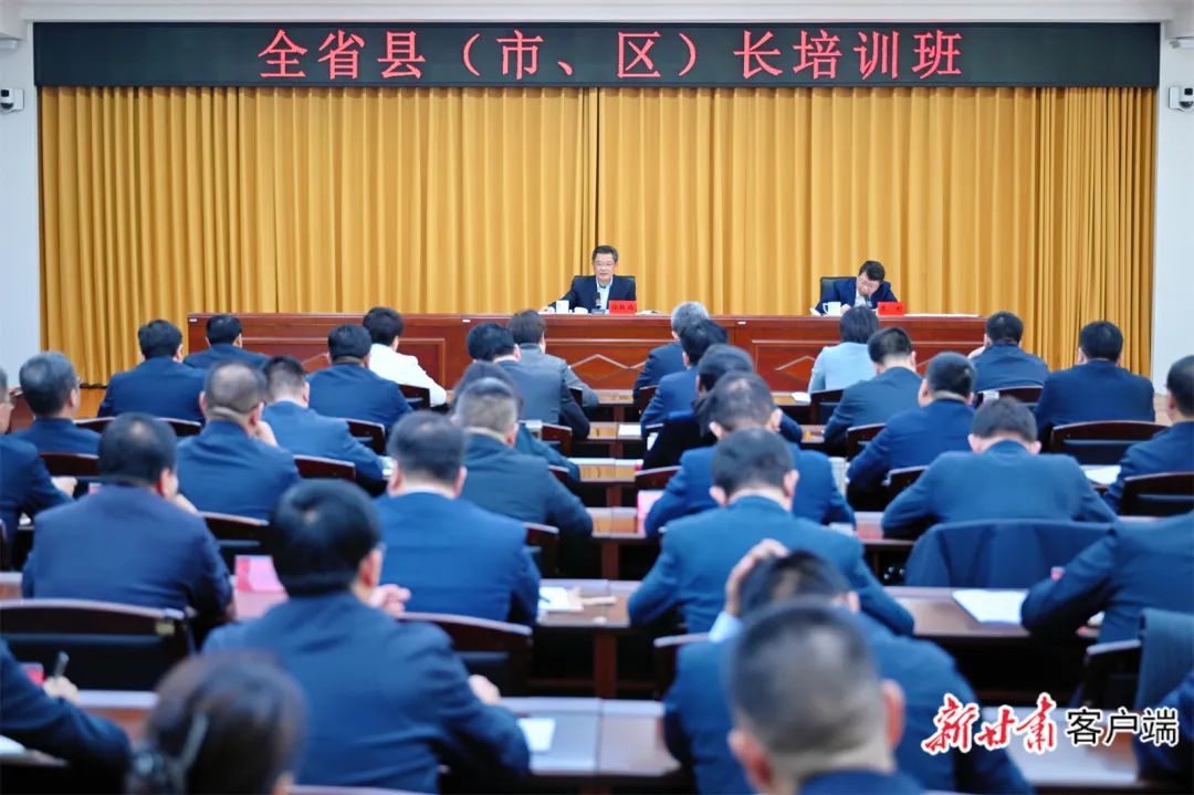 省委副书记、省长任振鹤11月18日出席全省县(市、区)长培训班开班式并作辅导报告。他强调,要深入学习贯彻党的二十届三中全会精神和习近平总书记视察甘肃重要讲话重要指示精神,从历史维度、战略高度、发展角度出发,看清全局大势、认清使命重任,知重负重、争做俯首干事抬头看路的政治明白人,追赶进位、争做胸有良策手有高招的发展主攻手,苦干实干、争做心有真情脚下生风的施工大队长,加快推动县域高质量发展,为谱写中国式现代化甘肃篇章夯基固本。