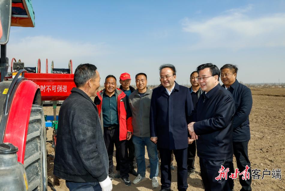 胡昌升先后深入凉州区松树村,民勤县上案村、河东村,古浪县暖泉村,天祝县德吉新村,走进田间地头,实地察看春小麦播种、高标准农田建设和乡村振兴等情况,与基层干部群众深入交流。他强调,“一年之计在于春”。要加力做好种子、化肥、农膜、农药等农资保供稳价工作,为春耕春播提供全程技术服务,强化春季田间精细化管理,着力提高农业生产组织化程度,推进良田、良种、良机、良法、良制“五良”融合发展,为全年农业丰收打下坚实基础。要大力发展现代寒旱特色农业,优先发展高效节水农业,深入推进农业产业结构调整,不断培育壮大农业新质生产力。要扎实推进巩固拓展脱贫攻坚成果同乡村振兴有效衔接,统筹抓好乡村建设、乡村发展、乡村治理,千方百计推动农业增效益、农村增活力、农民增收入。
