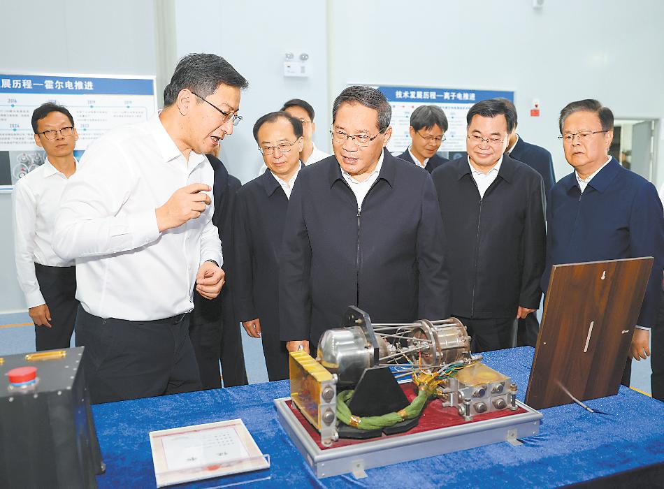 9月15日至16日,中共中央政治局常委、国务院总理李强在甘肃、青海调研。这是9月15日在甘肃兰州,李强来到空间技术物理研究所航天高新产业园,观看最新设备和零部件展示,详细了解相关技术原理和产品产销应用情况。 新华社记者 黄敬文
