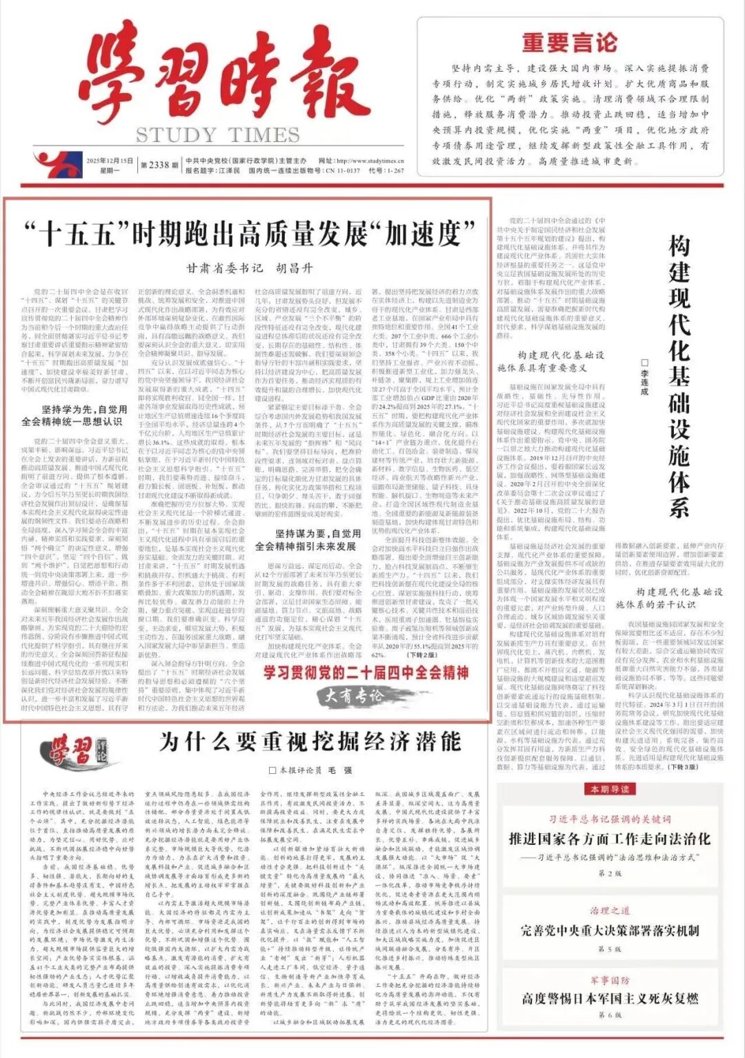 【学习时报】甘肃省委书记胡昌升:“十五五”时期跑出高质量发展“加速度”