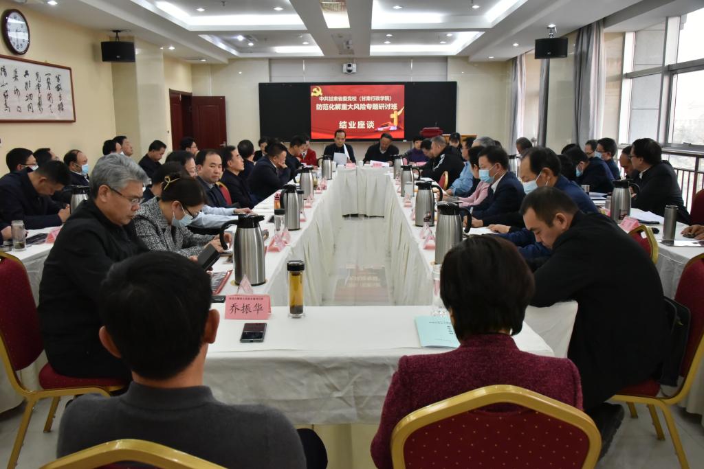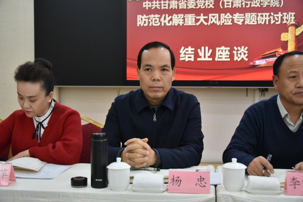 (通讯员 郑晓龙)12月30日下午,防范化解重大风险专题研讨班举行结业座谈会。省委党校(甘肃行政学院)副校(院)长杨忠出席并讲话。进修部四级调研员王芳主持座谈会