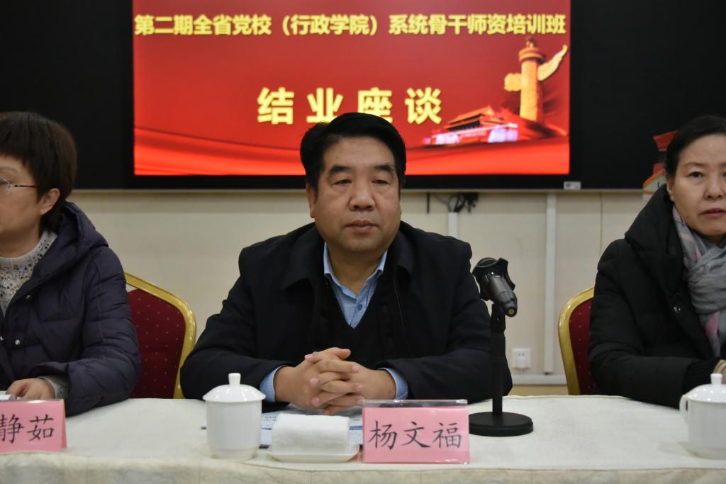 (通讯员 郑晓龙114午,二期全省党校(行政学院)系统骨干师资培训班召开结业座谈。省委党校(甘肃行政学院)副校(院)长杨文福出席并讲话教师进修学院二级调研员付志峰主持。
