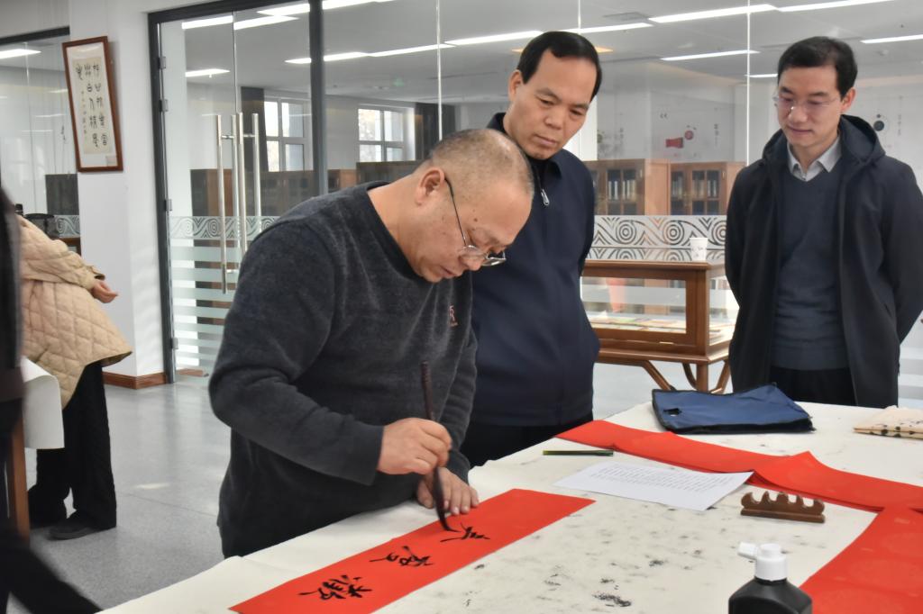 (通讯员 唐天旭)虎步奔腾开胜景,春风浩荡展宏图。为了传承中华优秀传统文化,营造喜庆祥和的节日氛围,120日上午,图书和文化馆联合文史教研部、组织部在图书馆书画工作室共同开展“辞旧岁迎新春 写春联送祝福”活动,特邀狄随义、王建平、赵望来、任民、成向东五位书法家挥毫泼墨。校(院)百余名教职工参加活动,副校(院)长杨忠亲临现场并致辞。