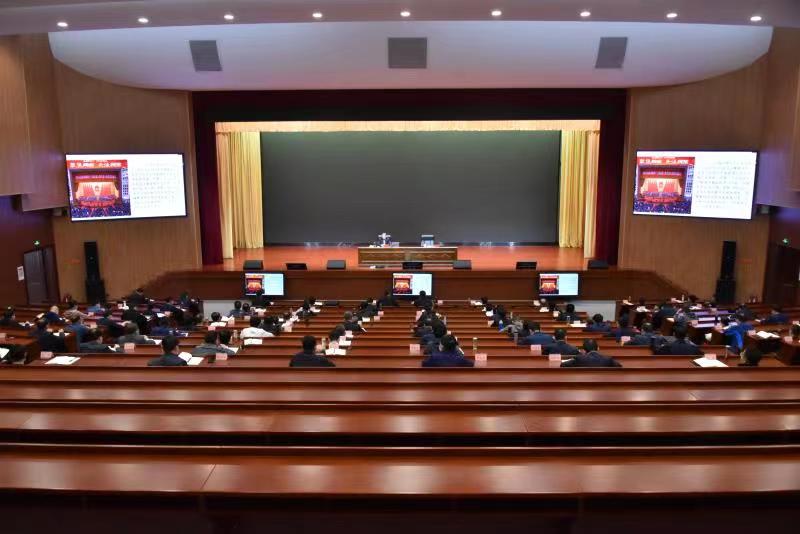 范鹏同志围绕2022年全国“两会精神”这个主题,从大会概况和会议成果、习近平总书记重要讲话精神、各项工作报告的主要精神、杨晓渡同志讲话精神和甘肃代表团履职情况等五个方面与大家进行了探讨和学习。