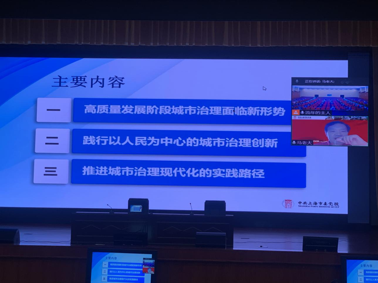 (通讯员 姬慧娜)4月14日上午,上海市委党校(行政学院)社会学教研部主任马西恒教授通过腾讯会议视频的方式,为中青班学员作了题为“提高城市治理现代化水平,推动人民城市高质量发展”的辅导报告,校(院)委委员、教务处处长陈永胜教授主持报告会。