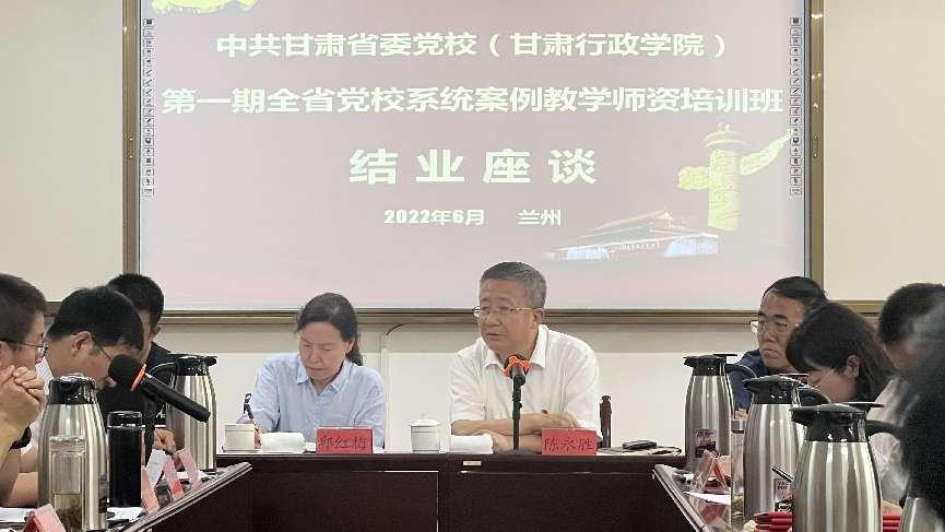 (通讯员 李蕾6月20日上午,第一期全省党校系统案例教学师资培训班在5号学员楼1(二)教室举行结业座谈。校(院)委员、教务处长陈永胜教授出席座谈会并讲话。教务处、教师进修学院(干部教育学院)公共管理教研部、后勤服务中心负责同志参加座谈。座谈会由班主任杰老师主持案例教学师资培训班51名学员参加了结业座谈。
