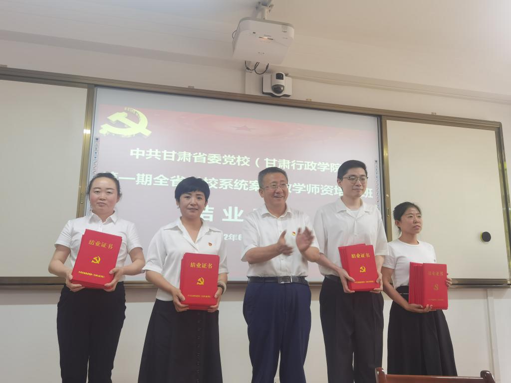 陈永胜代表校(院)委对学员们提出几点要求:一是进一步加强自身政治建设,党校是政治学校,政治立场是第一要务,这是党校建校以来始终的标准和属性,党校教师一定要有坚定的政治信仰、政治立场;二是进一步提升理论素养,尤其是要加强对习近平新时代中国特色社会主义思想的学习,加强对习近平总书记对甘肃重要指示的领悟和学习,理论素养对党校教师而言是第一位的素养、第一位的任务。三是进一步锤炼严谨的学术风格,政治理论、政治观点要通过学术来学理支撑,党校教师要有深厚的学术理论的积淀,要有严谨的学风;四是进一步加强新方法应用的本领,要勇于尝试案例式等新的教学方法,党校教师要能吃苦、讲大局、能奉献,不断加强自身作风建设。