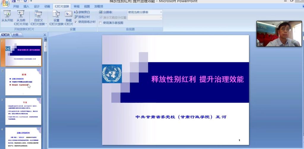 王河副教授交流了《释放性别红利,提升治理效能 》,他从新中国成立后男女平等事业取得的重大成就,到习近平谈男女平等伟大事业为脉络,阐述了我国男女平等的宪法原则,体现了男女平等这一基本国策,同时提出社会性别主流化是实现社会性别平等的根本途径。